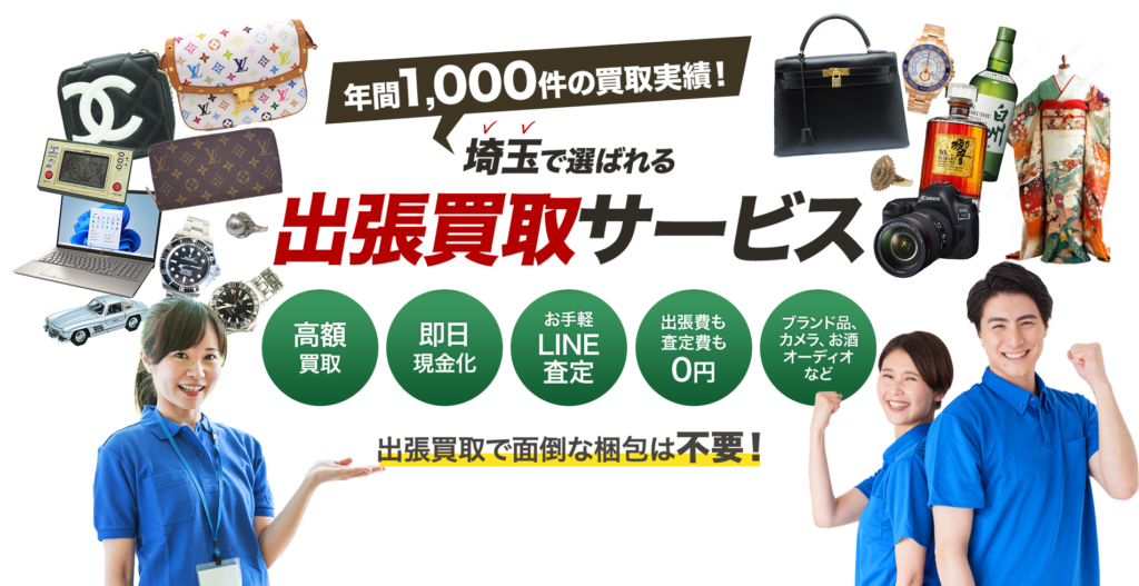 ブランド品・カメラ・お酒・オーディオ機器など、多様なジャンルの品物を埼玉県内全域で出張買取いたします。