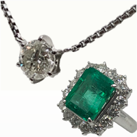 鑑定書がなくても査定いたします。1カラット以上のダイヤモンドリングや、サファイア・ルビー・エメラルドなどの色石付きジュエリーも高価買取の対象です。専門スタッフが確かな目で査定いたします。